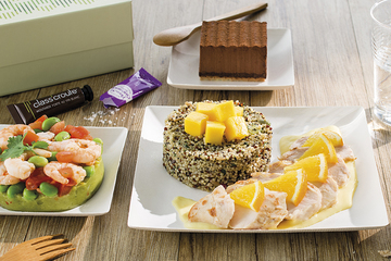 Composez le coffret repas qui vous ressemble en choisissant l'entrée, le plat et le dessert de votre choix.